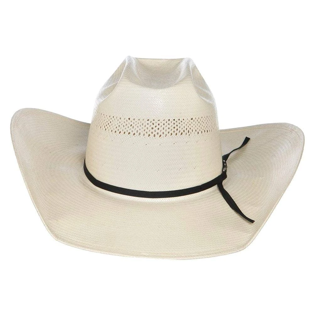 This American 20 Star Shantung Straw Cowboy Hat is beautiful in any crease. It is open crown, has a long oval profile, and a 4-1/4″ Brim.
