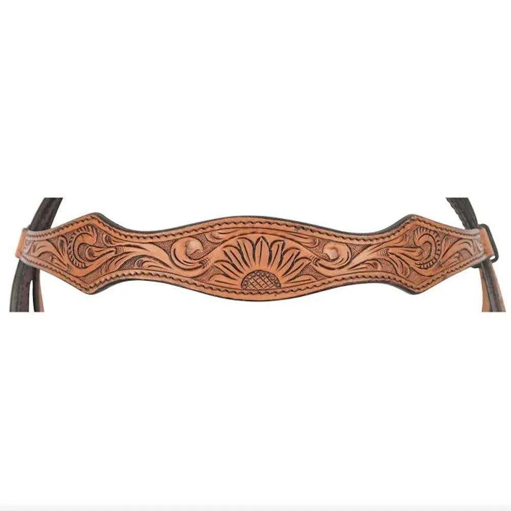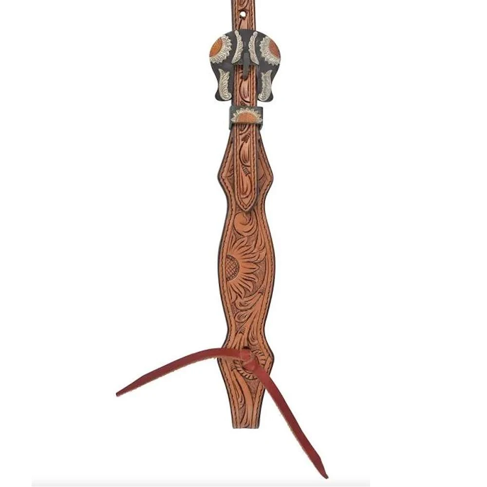 This beautiful 5/8in browband headstall from Circle Y features hand tooled sunflowers on antiqued leather. Finished with brown iron rusted iron buckles that showcase an engraved German Silver and copper sunflower design. 1012-12-W6