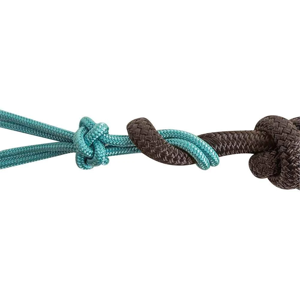 Classic Equine premium rope halter with 9 foot lead included. Turquoise halter and black lead. High quality, premium construction.