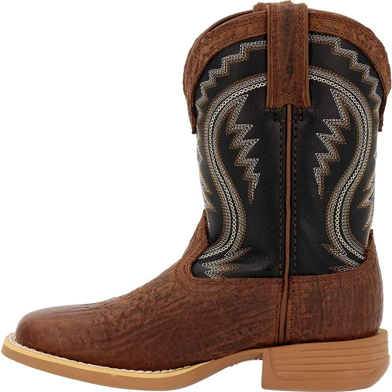 Introducing the kid’s Lil’ Rebel Pro by Durango western boot in Acorn/Black Onyx. This 8-inch pull-on style has a full-grain leather foot, collar and pull straps with a faux shaft. Inside it has a soft mesh lining, cushion flex insole and the patented fiberglass Dually Shank System. The outsole is rubber, and it has a double row sole stitch around the square toe and a 1-inch heel. Kids are going love these Lil’ Rebel Pro by Durango boots. Get a pair today!.