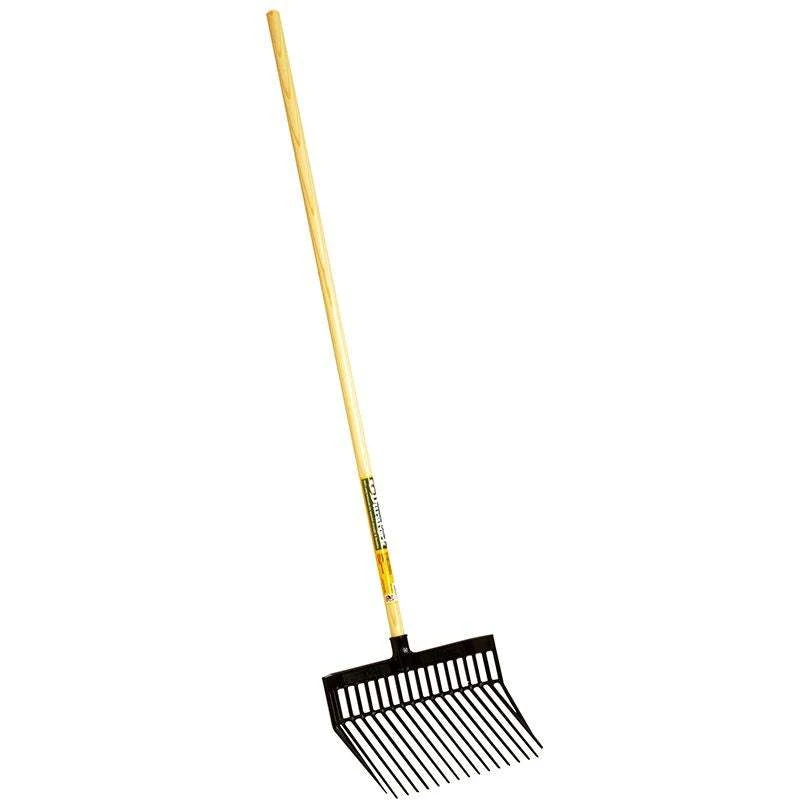 This is the original Little Giant DuraFork bedding fork that is a fixture in stables and barns everywhere. Manufactured from extra-strong 100 percent polycarbonate to provide super strength and flexibility. Designed for long-lasting use around the farm, ranch, and home. Specially designed tines are uniquely angled to provide easy manure pickup with less spilling. Nylon locknut secures the 52 inch long by 1.125 inch diameter hardwood handle. Fork head is 13.125 inch long by 15.125 inch wide. Black fork head.
