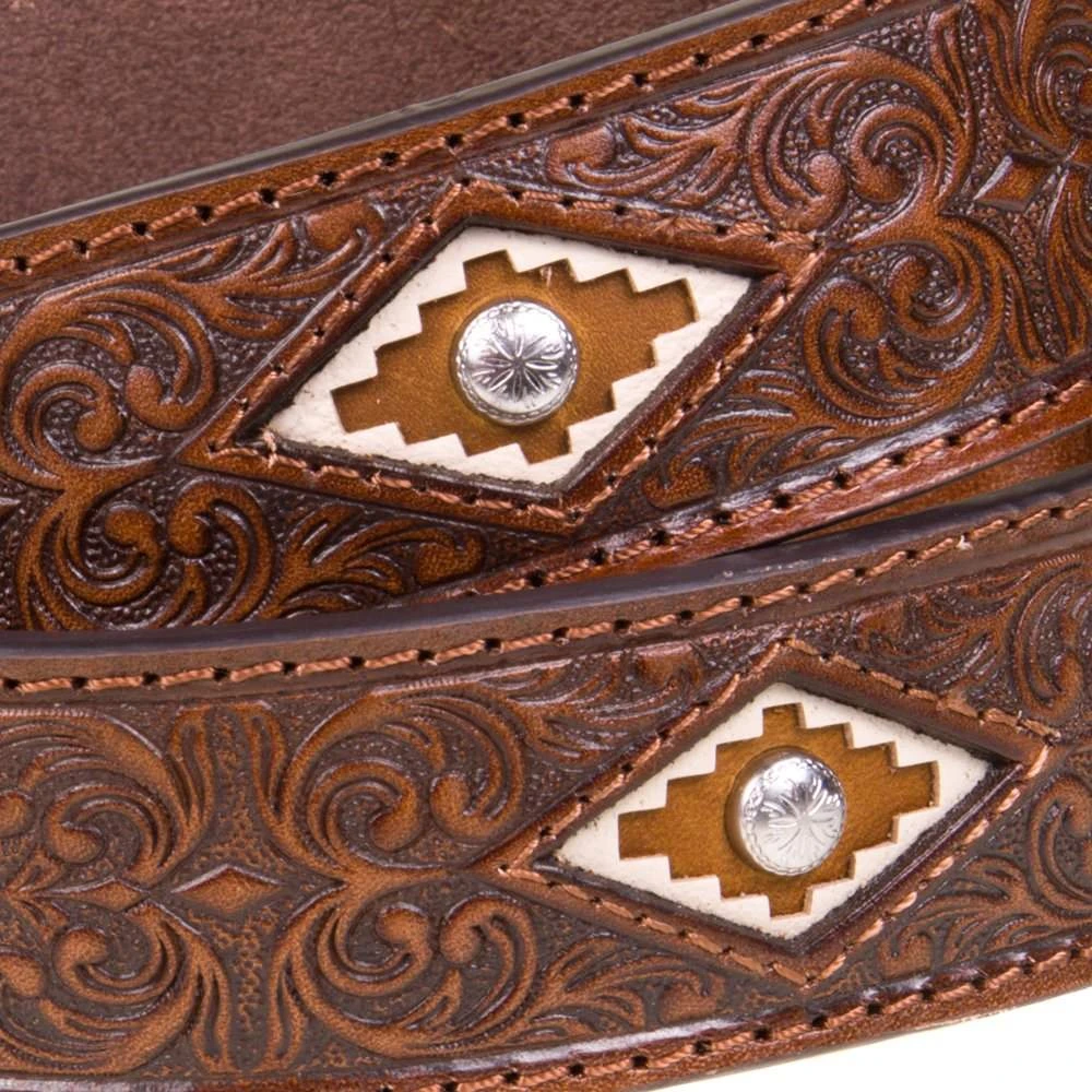 This Men`s Tooled Scroll Leather Belt w/ Diamond Cutout Detailing is the perfect belt for any man!