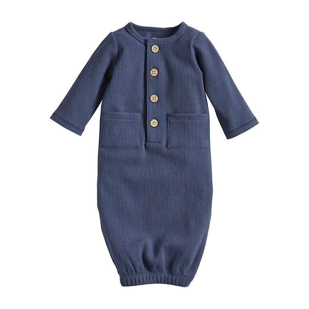 2-piece set. Waffle knit 0-3M gown comes boxed with 3-6M interlock footed sleeper.