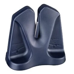 This portable manual sharpener is compact and easy to use. The manual sharpener features carbide plates which restore and bring an edge back from dull. The self-adjusting angle provides a 15 degree bevel on each side of the blade and the silicone padded base holds it firmly in place while sharpening. It is quick and easy to use, allowing anyone to sharpen kitchen knives or pocket knives with one simple, easy-to-master motion. Model: 002386