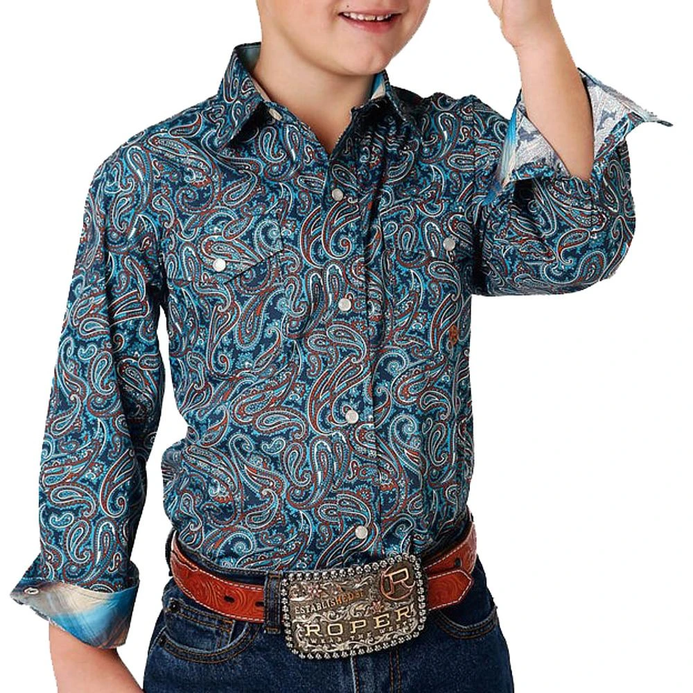 This boy’s western shirt from Roper’s Amarillo Collection was made for your little rodeo star.
