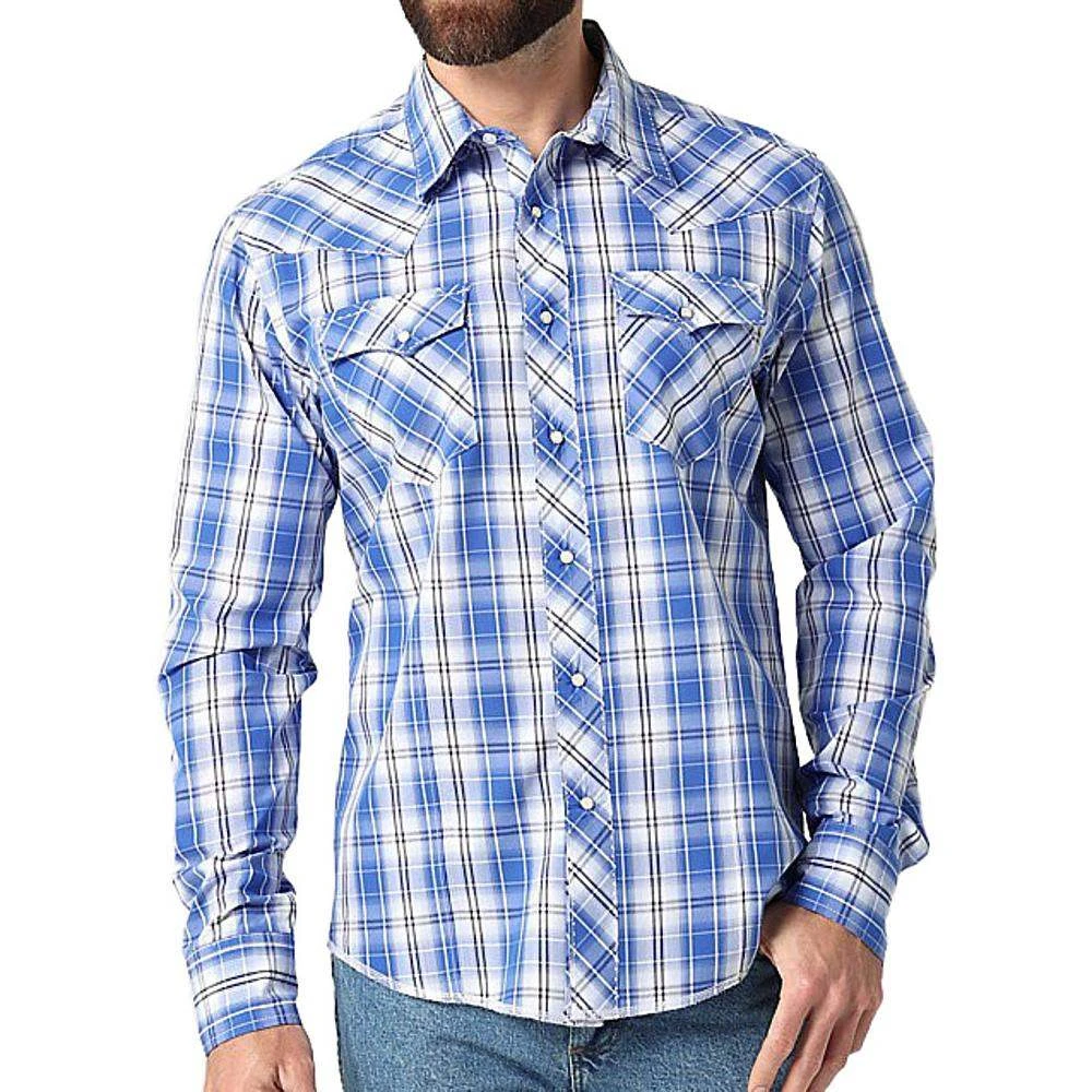 Serving that classic Wrangler® style at its best, this men’s long-sleeve fashion western snap plaid shirt comes with all the distinctive details you know and love. It features rancher’s crease styling in the front, a pointed front yoke, a sawtooth-inspired back yoke, two snap cuffs, double snap flap pockets at the chest, and a curved hem for versatility. It’s made of cotton to keep you comfortable all year long and it features a modern fit. You can leave it untucked or tuck it into your favorite Wrangler jeans, with a t-shirt underneath if you feel like layering.